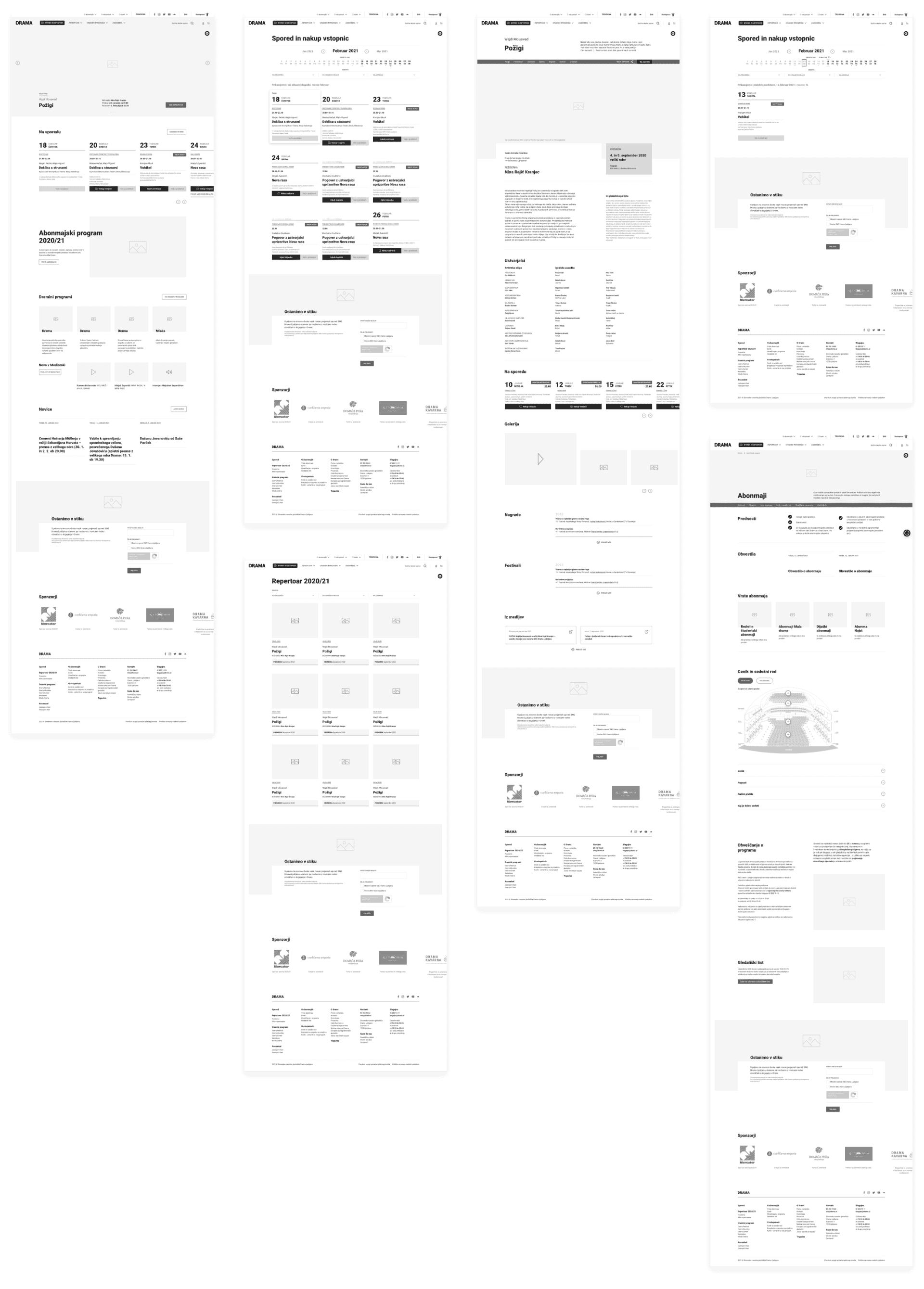First steps were defining new information architecture of the website, define hierarchy of information and then do research on best practices of theater websites and create a clickable wireframe prototype to test all the user flows.