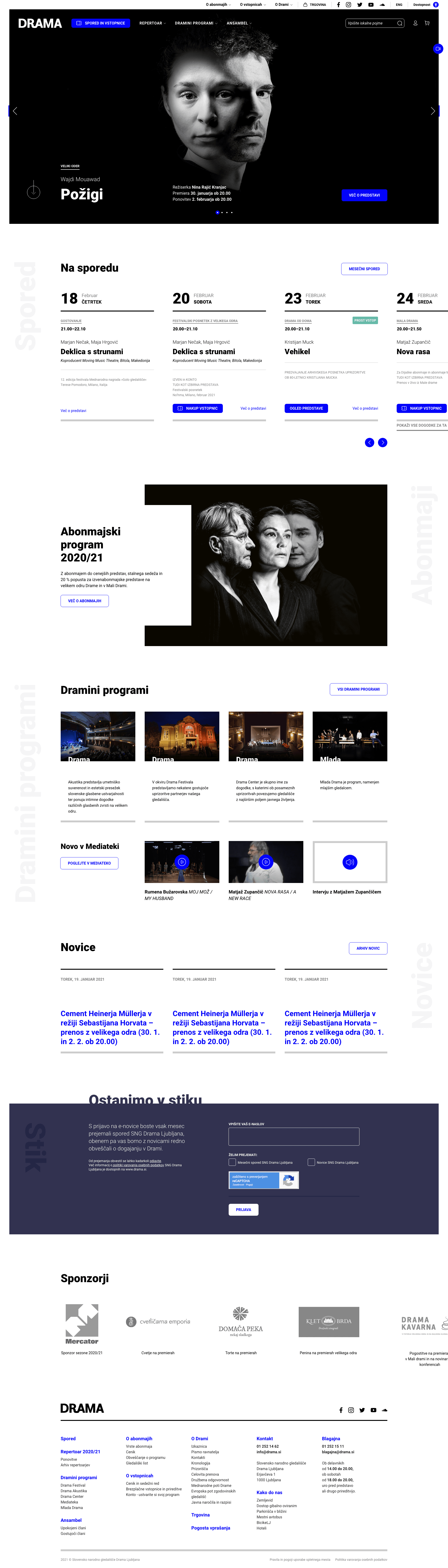Next I defined the styleguide and designed desktop and mobile versions of the website. The style is very minimalistic with bold fonts which complement imagery from Drama theatre. Blue color is used as a guide for user to know which elements are clickable.